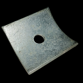Arandela cuadrada curva para tornillería de 1/2" en el ancho y espesor que el cliente requiera, bajo RETIE y Norma NTC 2806 galvanizado en caliente.