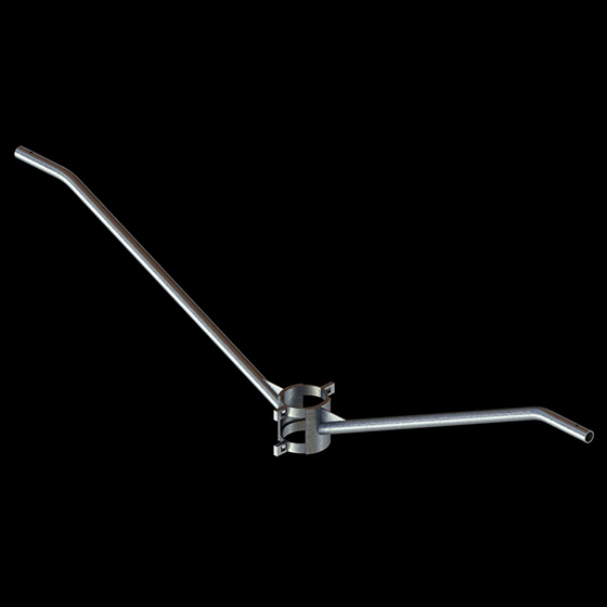 Soporte brazo con collarín doble (gemeliado) de 3 m de longitud (desarrollo) o en la longitud deseada, con abrazadera para poste de concreto. Basado en la norma Codensa ET832, en el diámetro y espesor de tubo según la preferencia, galvanizado en caliente.