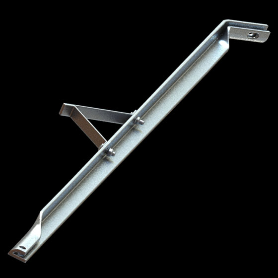 Diagonal en ángulo bandera pieamigo con doblez de 2,134 m (7 pies) longitud tramo mas largo desde el doblez, basada en norma EPM RA7-013 galvanizada en caliente, en 2" de ancho y 1/4" de espesor de perfil en L.