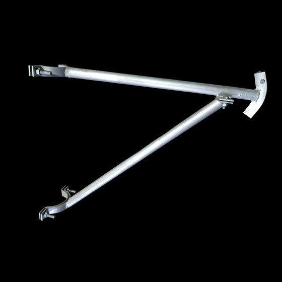 Templete cuerda guitarra reforzado (con apoyo) de 1 m de largo en horizontal, en tubo de acero de 1 1/4" o en 1 1/2" con collarín en diámetro de 140 mm o en otro como: 160 mm, 180 mm, 200 mm, 220 mm, 240 mm, 260 mm, 280 mm o en el diámetro deseado, galvanizado en caliente. Hacen parte del templete para sostener el poste con retenida tipo cuerda guitarra.
