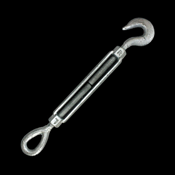 Tensor ojo gancho con rosca unc de 5/8" con ojal cerrado en un extremo y gancho abierto en el otro, galvanizado en caliente.