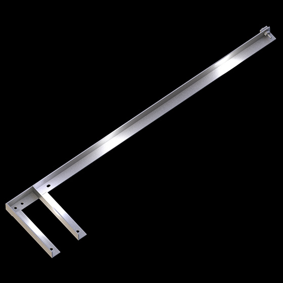 Bayoneta sencilla de alineamiento tipo f de 2 m compuesta por 1 perfil en L principal y 2 perfiles soldados para formar la figura indicada en la imagen, galvanizada en caliente, en el ancho y espesor de perfil en L de su preferencia. Se realizan fabricaciones especiales con la cantidad y diámetro de perforaciones que se requieran.