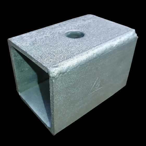 Dado cubo soldado elaborado en perfil en L de 2 1/2" x el espesor y la longitud requerida, con perforaciones de 11/16" o de 13/16", galvanizado en caliente.