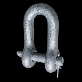Eslabón en U recto (grillete) fabricado por proceso de fundición nodular con cuerpo en 5/8" de diámetro ensamblado con pasador en acero de 5/8" de diámetro y pin de seguridad, basada en norma NTC 2995 galvanizado en caliente. Elemento de apoyo horizontal o medio de fijación de otros elementos en las líneas de distribución aéreas de media y baja tensión, para servicio continuo.