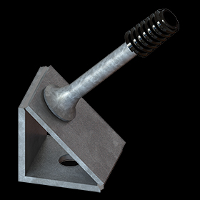 Espigos pecho paloma con rosca para aislador tipo pin plástica en polietileno de 1" o de 1 3/8" con longitud varilla de 6 1/2" o en 137 mm soldada a una platina con un tramo de perfil en L, todo galvanizado en caliente. Los espigos pecho paloma se usan para montar o fijar aisladores tipo pin a 45 grados.