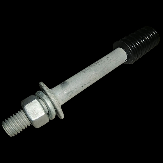 Espigos pin rosca unc de 5/8" para cruceta metálica con rosca plástica en polietileno de 1" con longitud total de 6 1/2" o en otra longitud como: 7", 7 1/2", 8", 10", 11 3/4" galvanizado en caliente. El espigo es elaborado en varilla de acero estampado en caliente con inyección de rosca plástica en la parte superior, el espigo se usa para montar o fijar aisladores tipo pin a una cruceta en el poste.