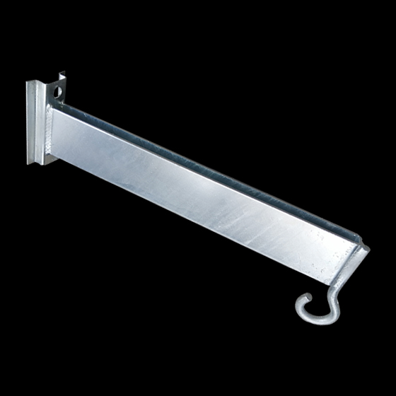 Extensión para soporte de red trenzada de baja tensión basado en norma Codensa LA 320-1 circuito secundario sencillo en conductor trenzado construcción en línea con extensión. En longitud cuerpo de 0,4 m o en otra como: 0,5 m, 0,8 m o en la longitud deseada, elaborado en lamina y perno de ojo abierto en varilla de acero, todos los componentes soldados entre si, galvanizado en caliente.