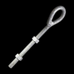 Perno de ojo cerrado de 1/2" x 4" de longitud del tramo recto, o en otra como: 5" o en la longitud deseada, con rosca unc, galvanizado en caliente, se ofrece sin accesorios o con tuercas hexagonales y otros según el requerimiento. Elaborado en acero SAE 1010-1020 grado 2, cerrado con soldadura.