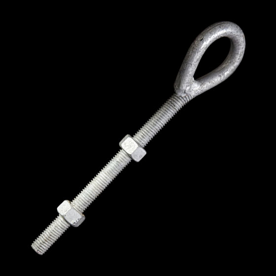 Perno de ojo cerrado de 3/4" x 4" de longitud del tramo recto, o en otra como: 6", 8", 10", 12", 14", 16", 18", 20", 22", 24", 26", 600 mm o en la longitud deseada, con rosca unc, galvanizado en caliente, se ofrece sin accesorios o con tuercas hexagonales y otros según el requerimiento. Elaborado en acero SAE 1010-1020 grado 2, cerrado con soldadura.