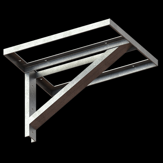 Sillas para transformador con base de 600 mm de ancho x 600 mm de profundidad, elaborada con perfiles en acero soldados entre si, galvanizado en caliente, se ajustan al poste por medio de collarines.