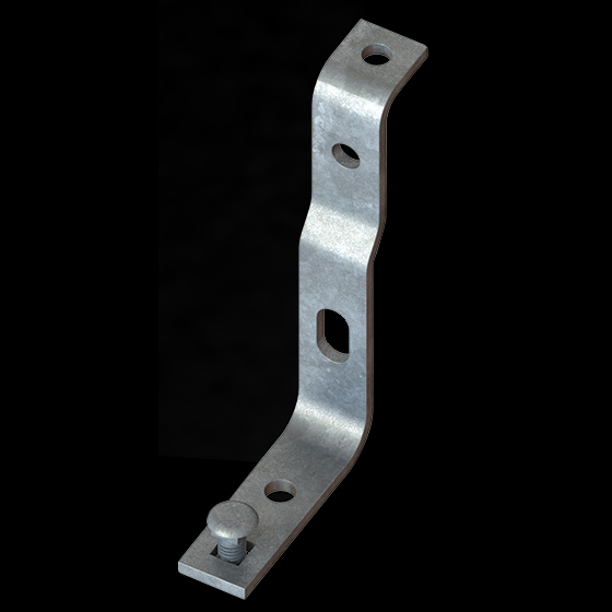 Soportes Autoválvula y Botella Terminal en platina de 8 mm de espesor x 1 1/2" de ancho x altura de 169 mm. Soporte para ubicación en crucetas de elementos de seguridad en líneas aéreas como: botella terminal y autovalvula.