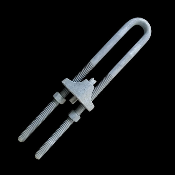 Tensor en U con rosca unc de 3/8", con capacidad para 2 toneladas galvanizado en caliente. Es utilizado para el inicio y al final de una templa y en los vientos, transfiere la tensión ejercida sobre el cable mensajero.